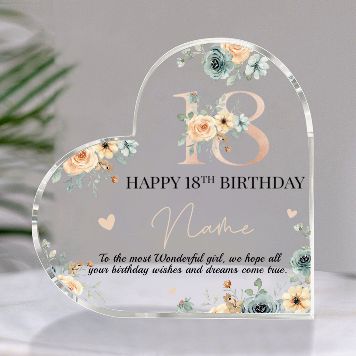 Personalized Happy 18th Birthday Heart Acrylic Plaque -18th Birthday Gift For Daughter Friends – 18 Years Old Keepsake Gifts