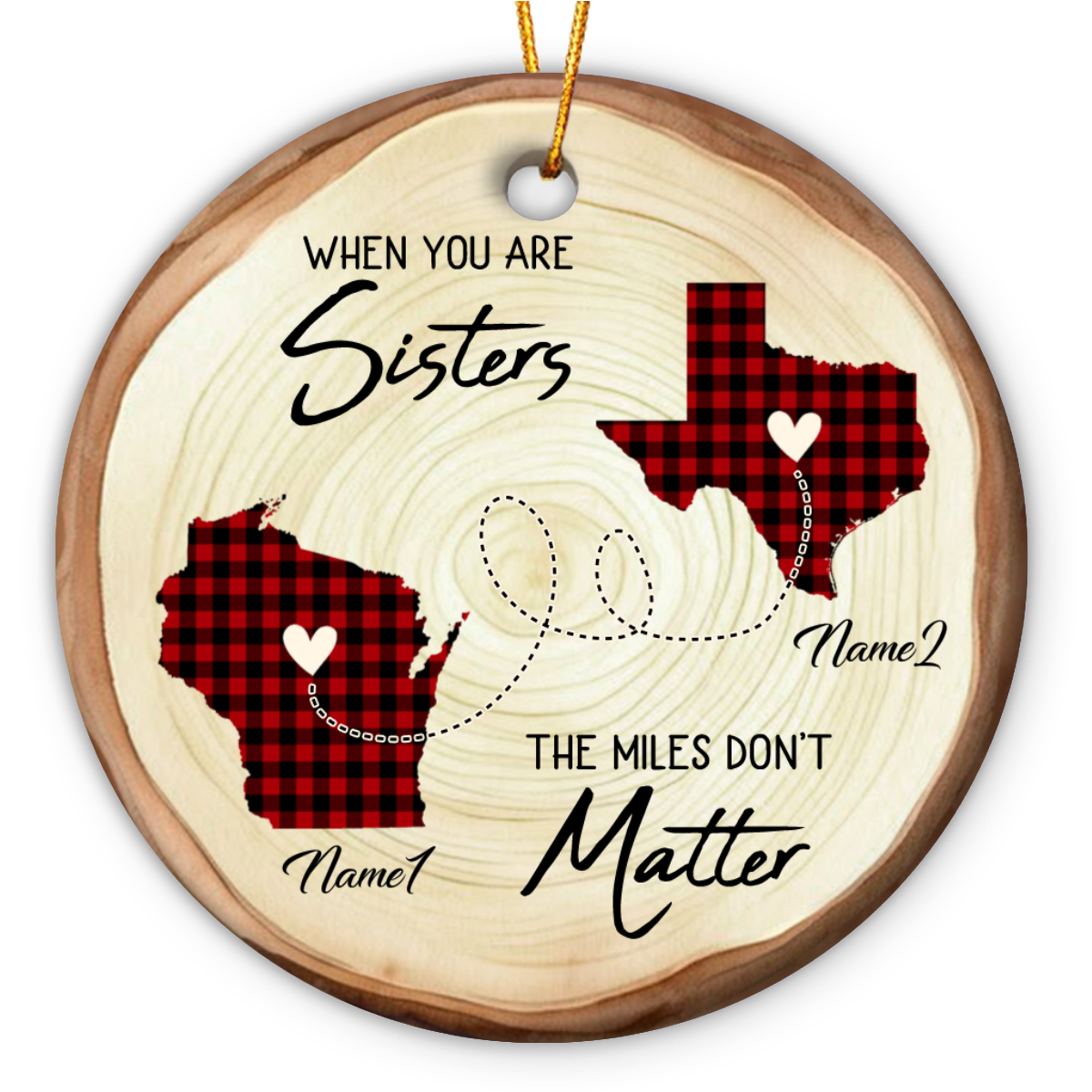 Personalized Two State Map Sisters Long Distance Ornament, When You Are Sisters The Miles Don’t Matter Ceramic Ornament