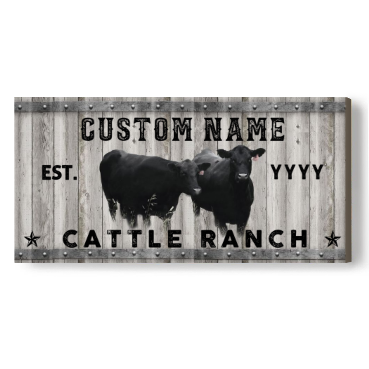 Black And White Cattle Ranch Sign, Personalized Cow Art Canvas, Modern Farmhouse Wall Decor