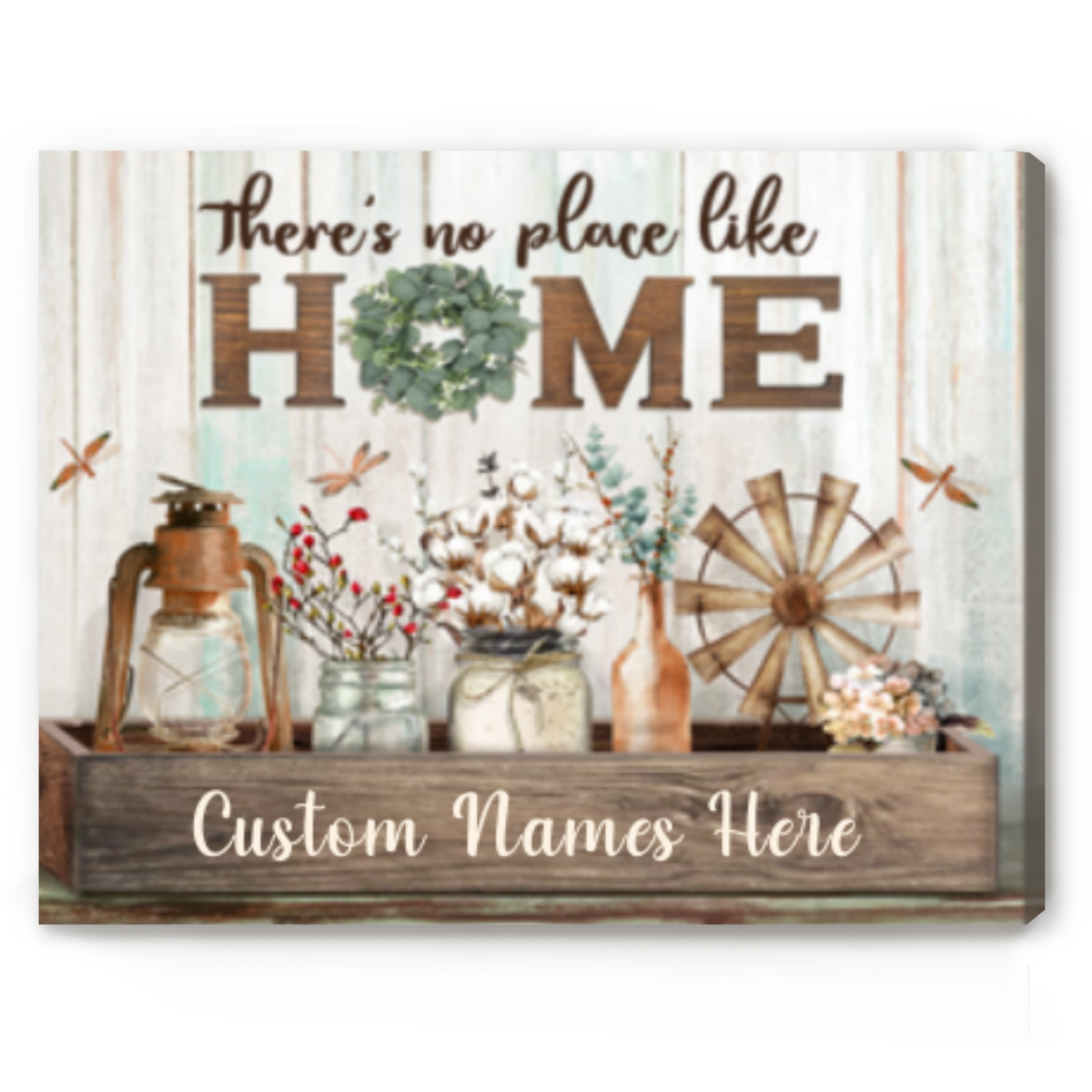 There Is No Place Like Home Sign,Personalized Family Names Wall Art, Rustic Farmhouse Wall Decor