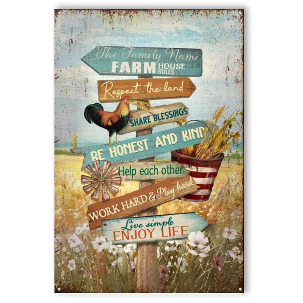 Personalized Farmhouse Rules Metal Sign, Custom Farmhouse Sign, Rustic Home Decor