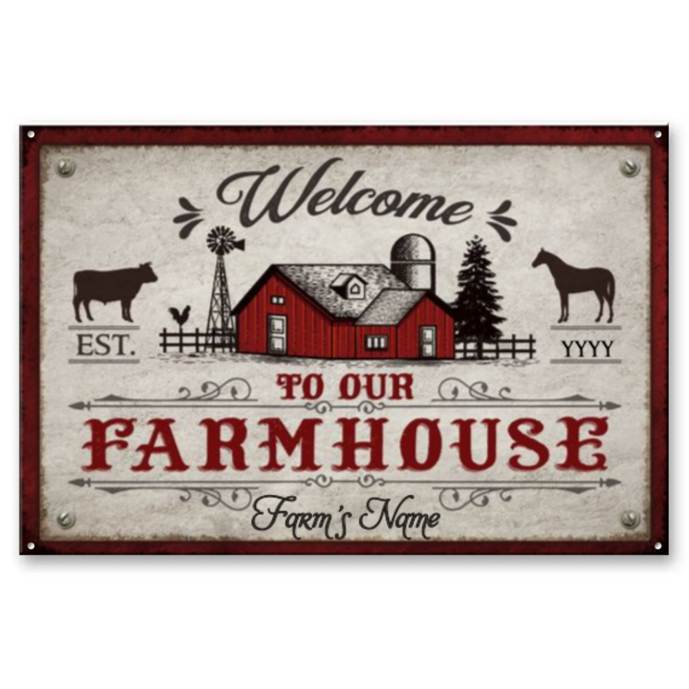 Custom Welcome to Our Farmhouse Metal Sign, Personalized Farmhouse Sign, Farmhouse Decor
