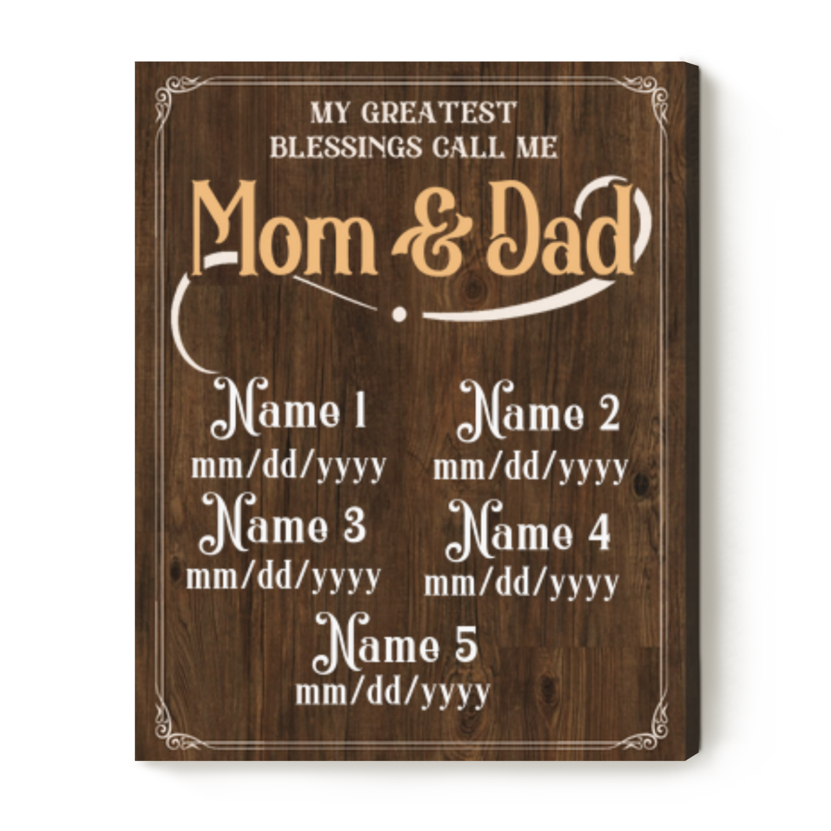 Personalized My Greatest Blessings Call Me Mom And Dad Wall Art, Gifts for Parents with Kids Names, Best Gifts for Parents