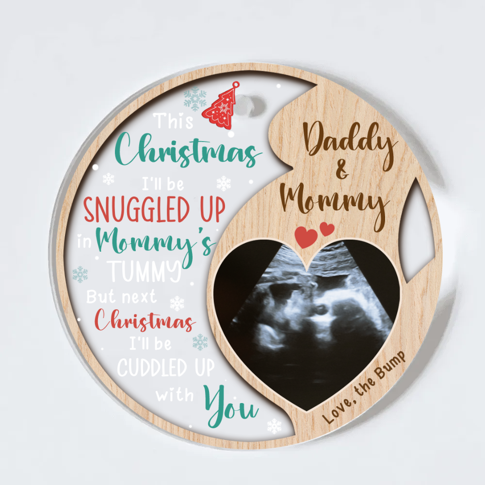 Custom I’ll Be Snuggled Up In Mommy’s Tummy Ornament, Ultrasound Ornament, Expecting Parents Gift, New Parents Gift From The Bump, Sonogram Ornament