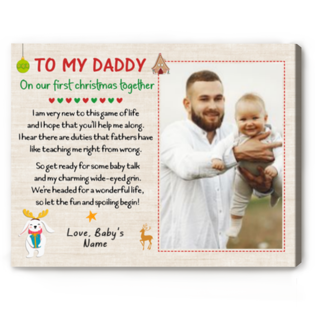 To My Daddy On Our First Christmas Together – Dad 1st Christmas Personalized Picture Canvas – First Time Dad Christmas Gifts – New Dad Gift From Baby