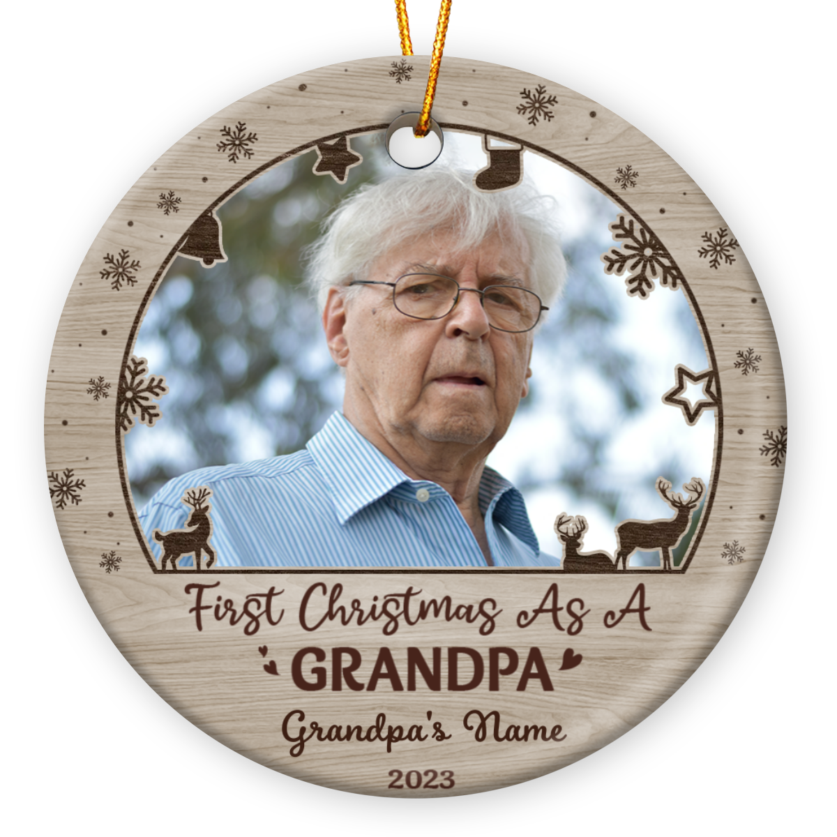 First Christmas As A Grandpa – Personalized New Grandpa Photo Ceramic Ornament – Grandpa First Christmas Tree Decoration