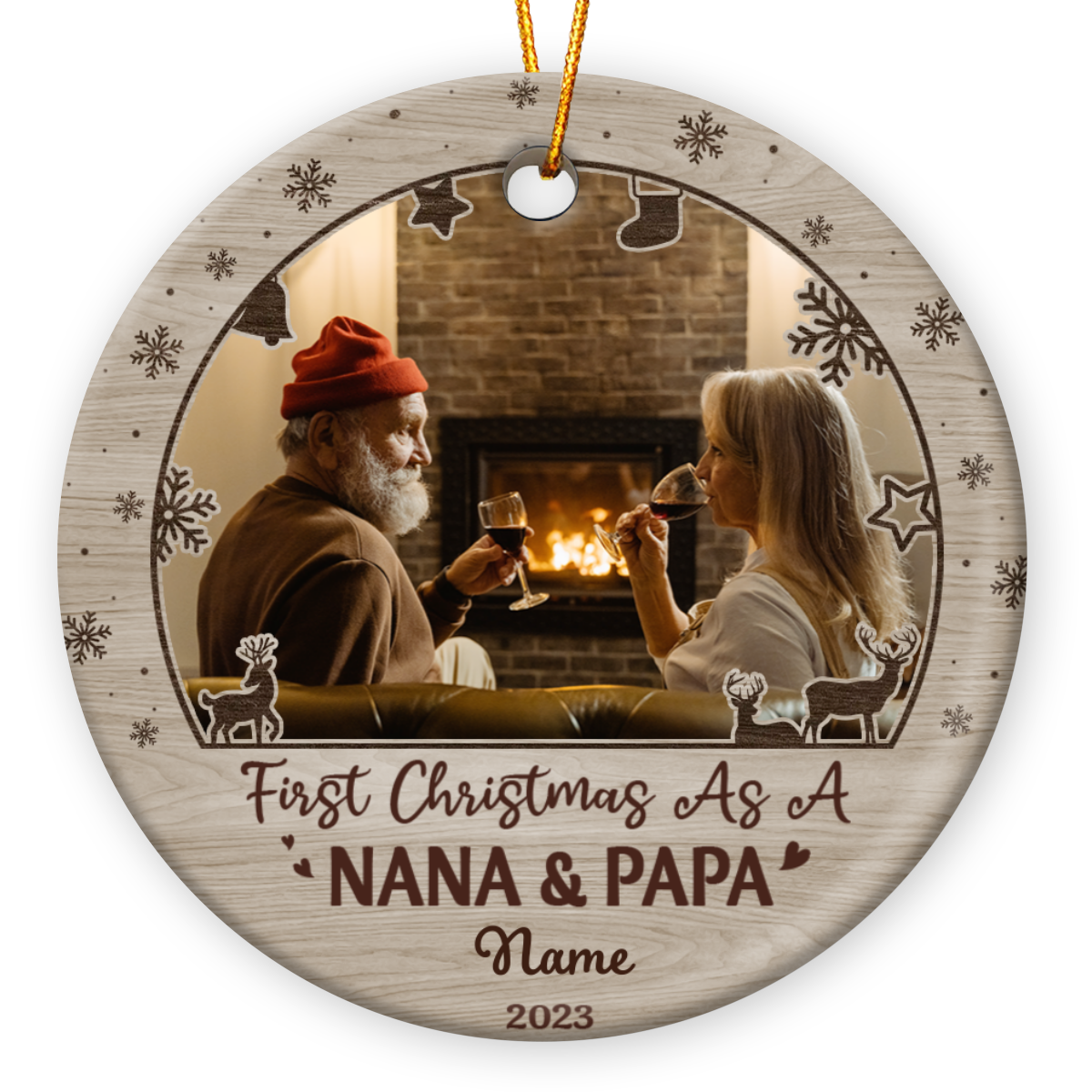 First Christmas As A Nana and Papa – Personalized New Grandparents Photo Ceramic Ornament – Newborn Baby Family First Christmas Tree Decoration