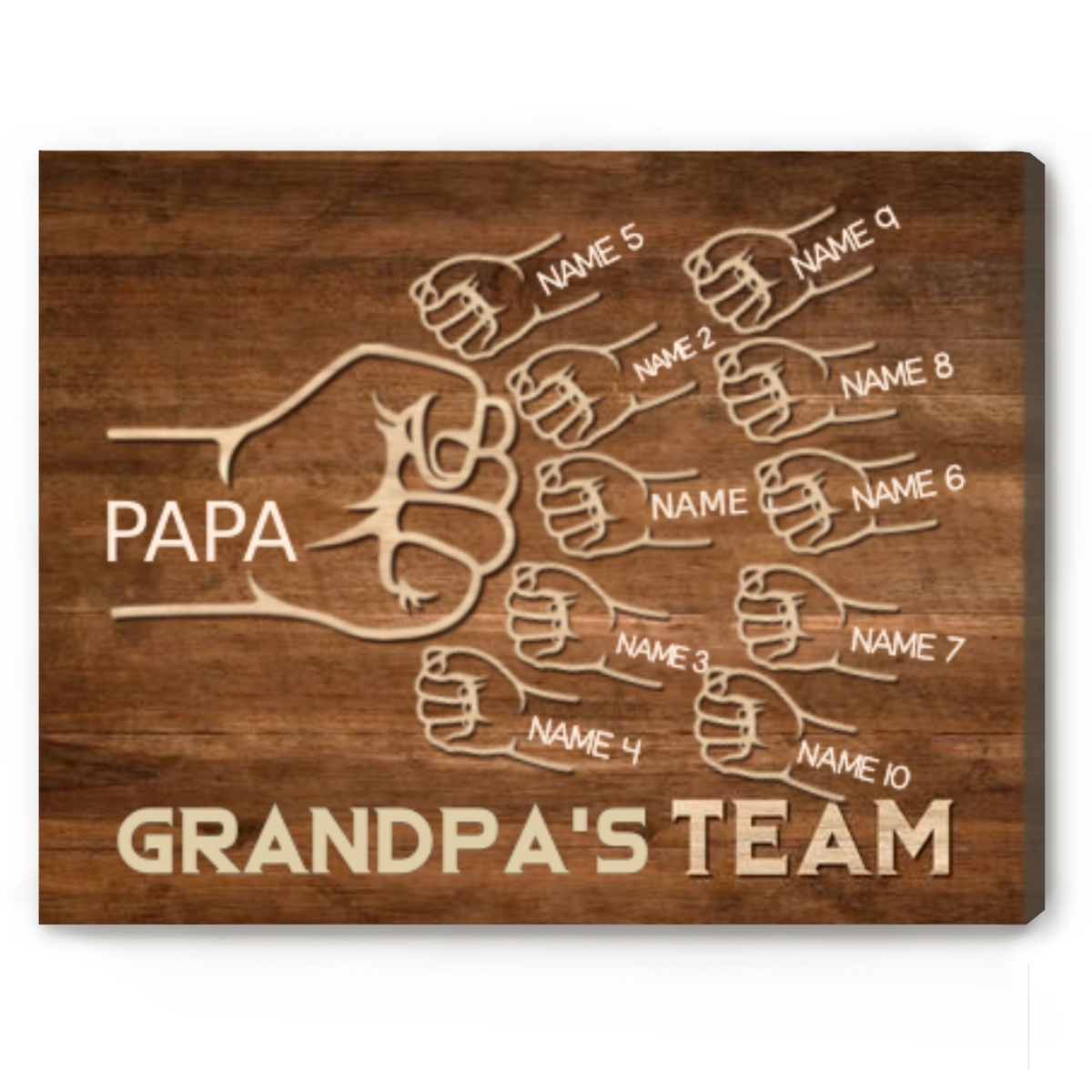 Grandpa’s Team – Custom Grandpa And Kid Fist Bump With Names Sign – Father’s Day Sign For Grandpa – Grandpa Gift From Grandson Granddaughter