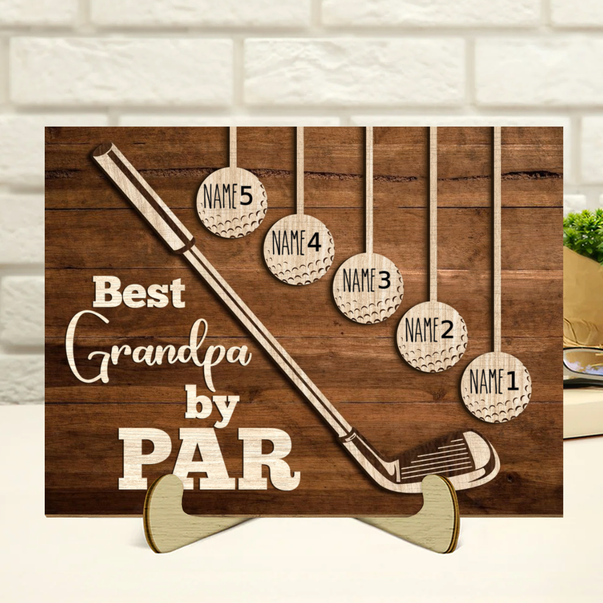 Best Grandpa By Par – Custom Grandpa Golf Wooden Plaque With Grandkids Names – Father’s Day Golf Gifts 2025 – Golf Gifts For Grandpa