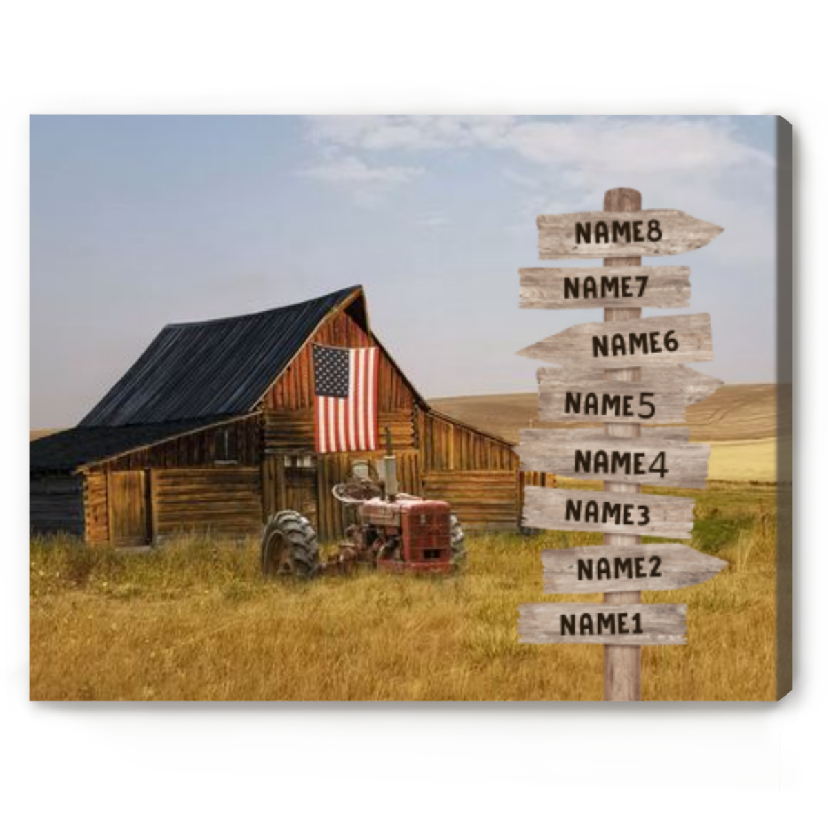 Father’s Day Gifts For Dad, American Barn Art Multi-names Premium Canvas, Custom Family Name Street Sign, Patriotic Gifts For Dad Grandpa