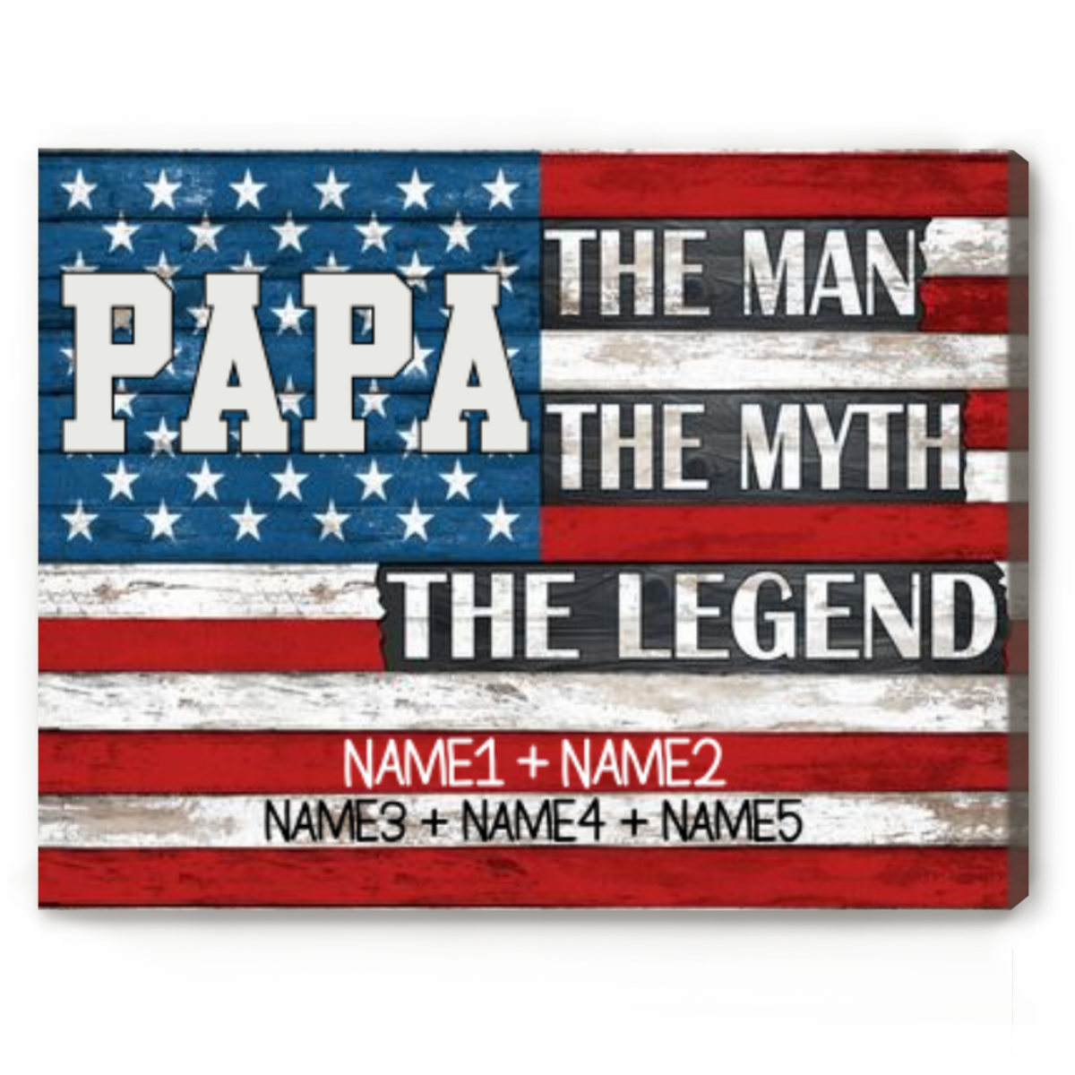 The Man The Myth The Legend – Custom Grandpa American Flag Sign With Grandkids Names – Patriotic Canvas Print – Patriotic Gifts For Men