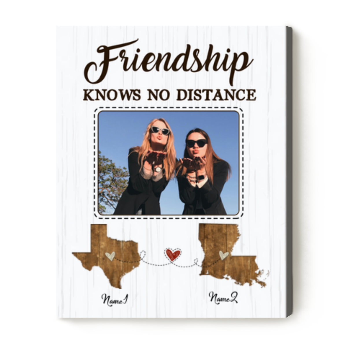 Friendship Knows No Distance – Long Distance Friends Custom Two State Maps Canvas – Best Friends Moving Gift – State To State Gift