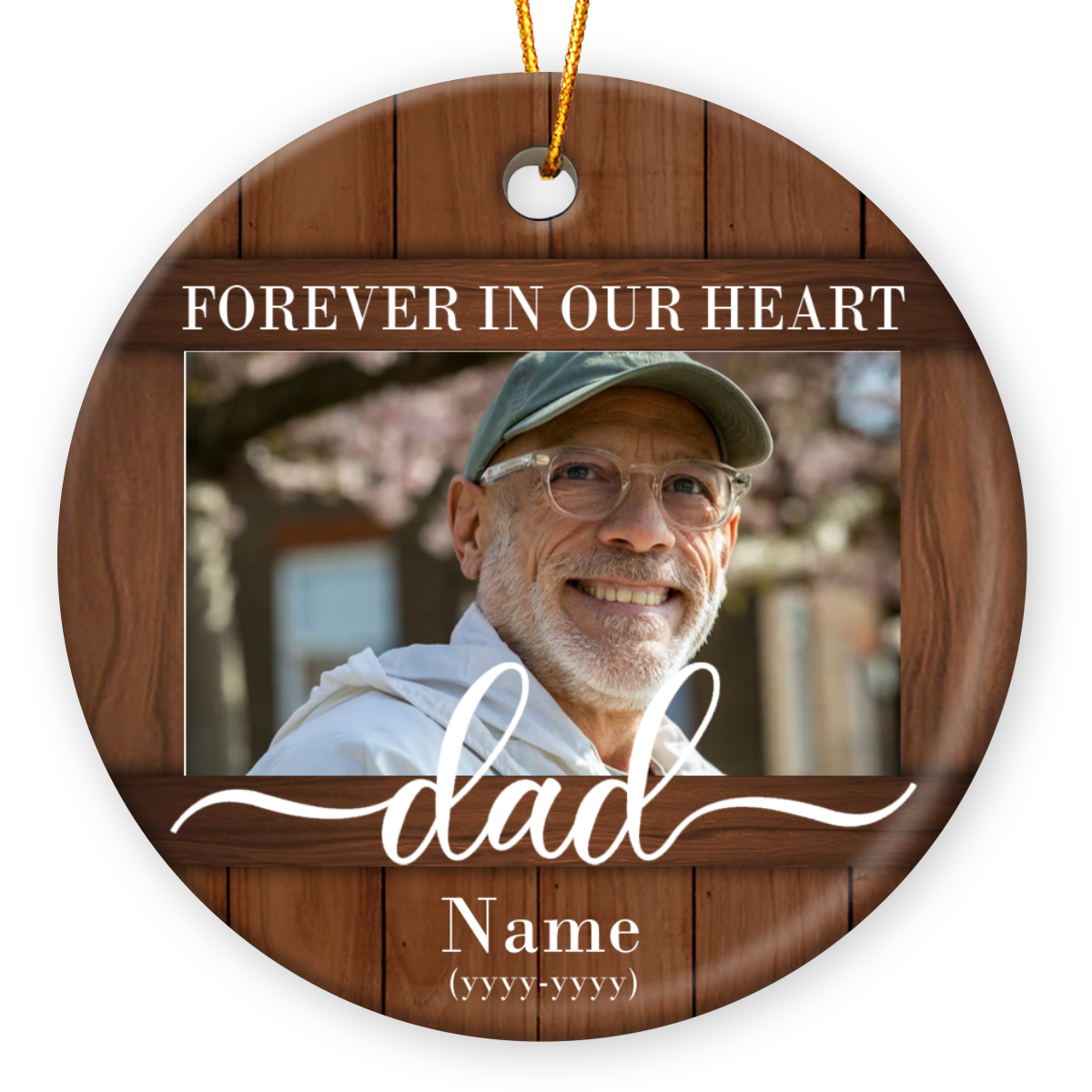 In Loving Memory – Personalized Photo Memorial Ceramic Ornament – Custom Remembrance Christmas Tree Ornament – Dad Loss Ornament