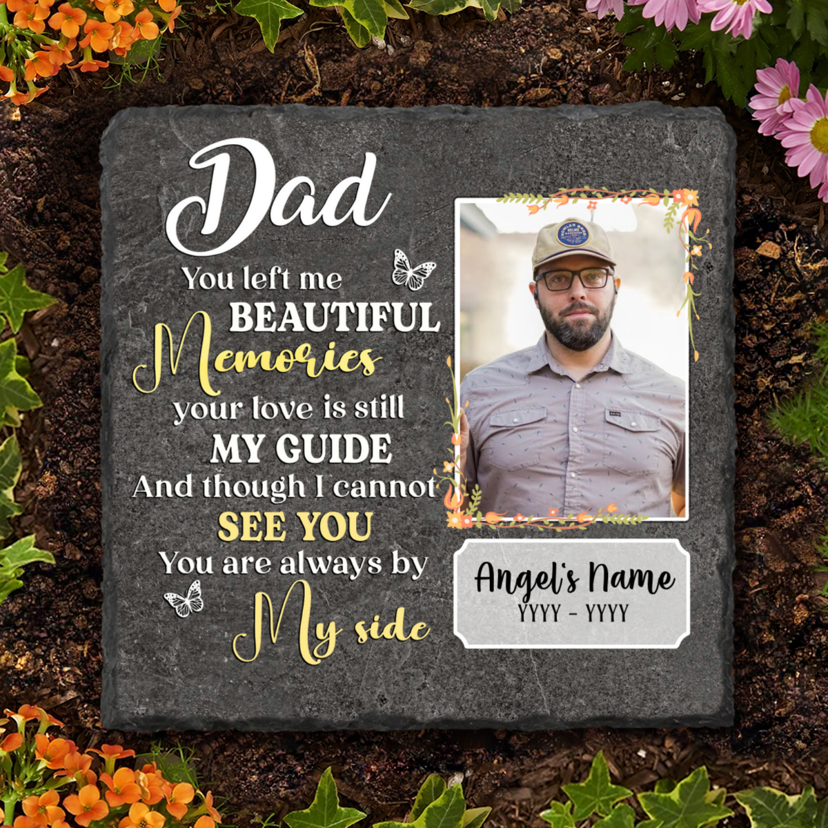 Personalized Dad Memorial Photo Slate, Sympathy Gift For Loss Of Father, You Left Me Beautiful Memories Dad Memorial Stone Father’s Day Gifts