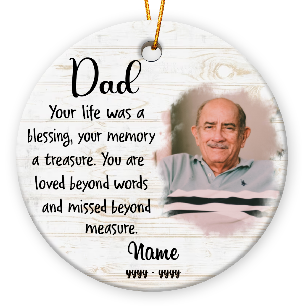Personalized Dad Remembrance Photo Ornament, Fathers Day Gifts For Loss Of Dad, Your Life Was A Blessing