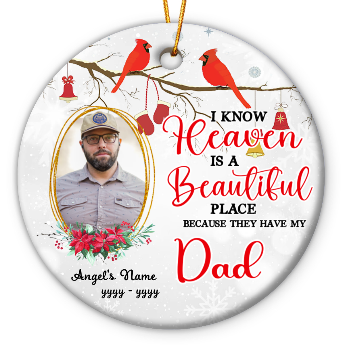 Heaven Is Beautiful Place Personalized Dad Memorial Photo Ornament – Remembrance Gifts For Loss Of Father
