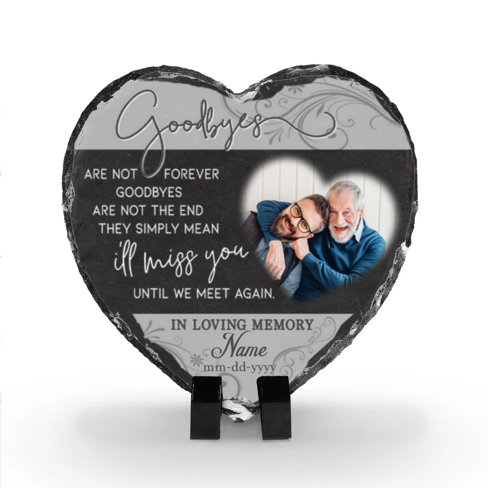 Goodbye Are Not Forever – Personalized Memorial Slate with Photo – Heart Shape Stone – In Loving Memory Gifts