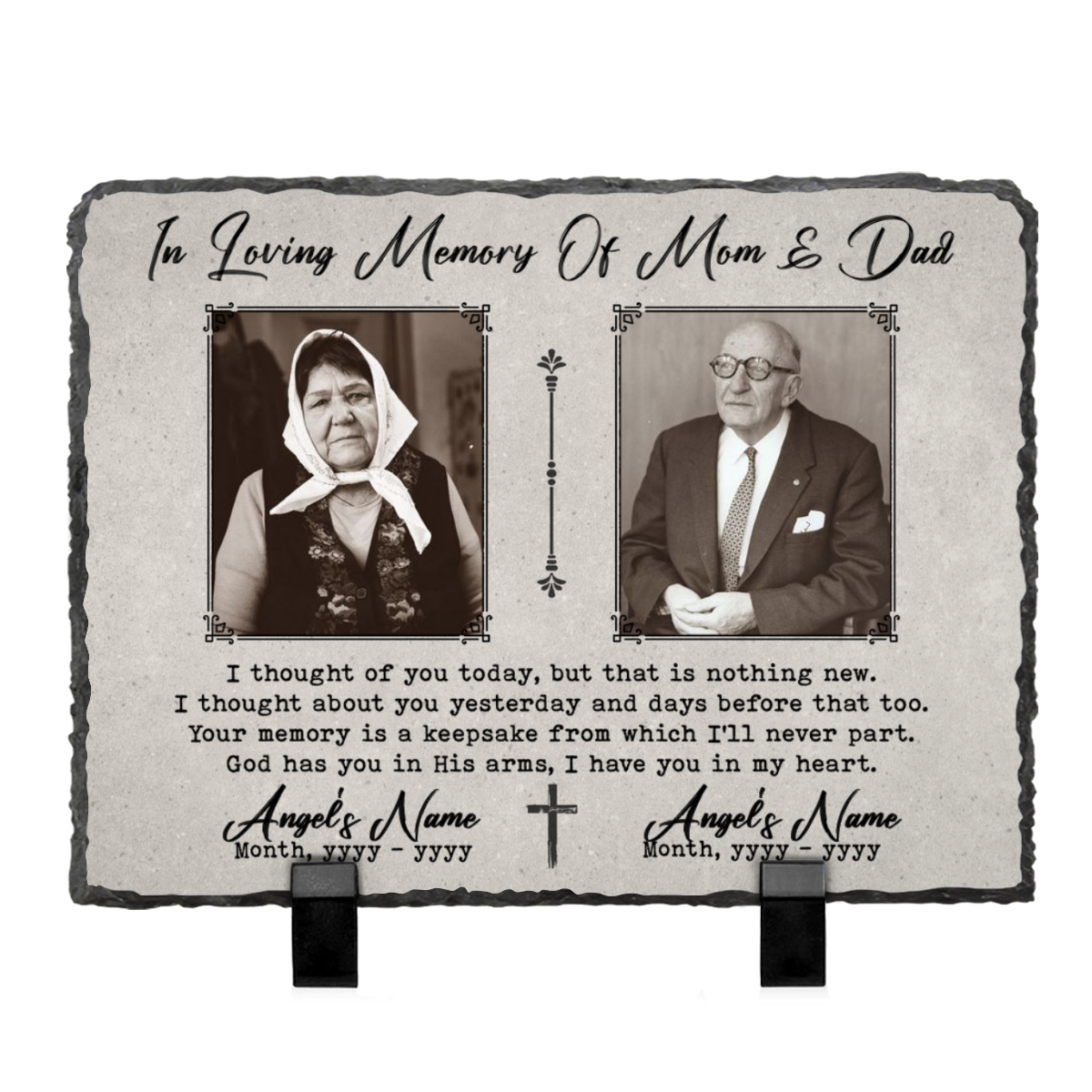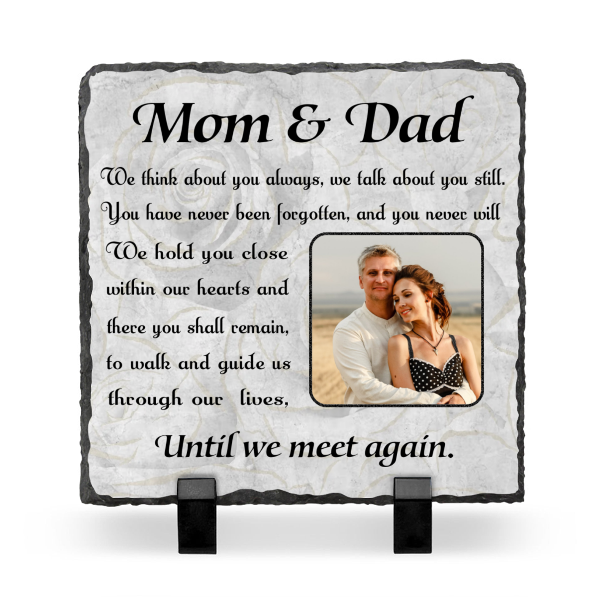 Custom Parents Memorial Picture Stone Slate – Memorial Gift for Loss of Parents – Personalized Parents Sympathy Gift – In Memory of Parents Gift