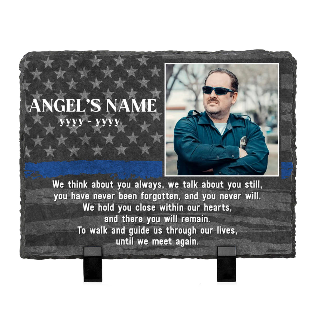 Custom Police Officer Memorial Photo Slate – Bereavement Gift For Police – Police Thin Blue Line Memorial Stone – Police Officer Sympathy Gift