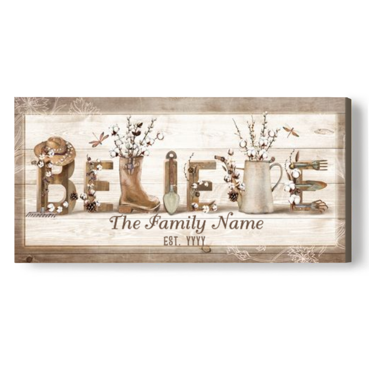 Large Farmhouse Believe Wall Art, Personalized Name Family Sign, Farmhouse Wall Decor