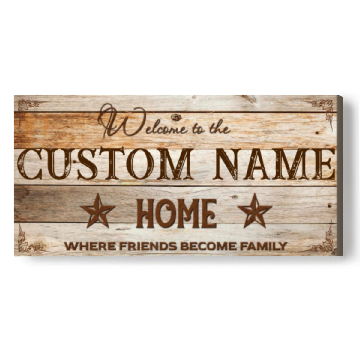 Personalized Welcome To Our Home Sign, Where Friends Become Family Wall Art, Rustic Living Room Wall Decor