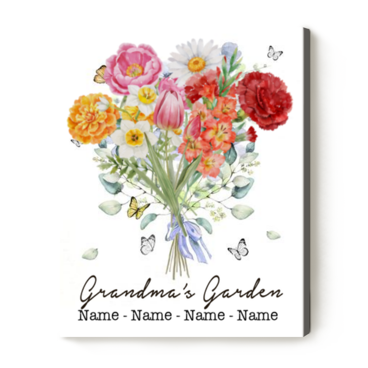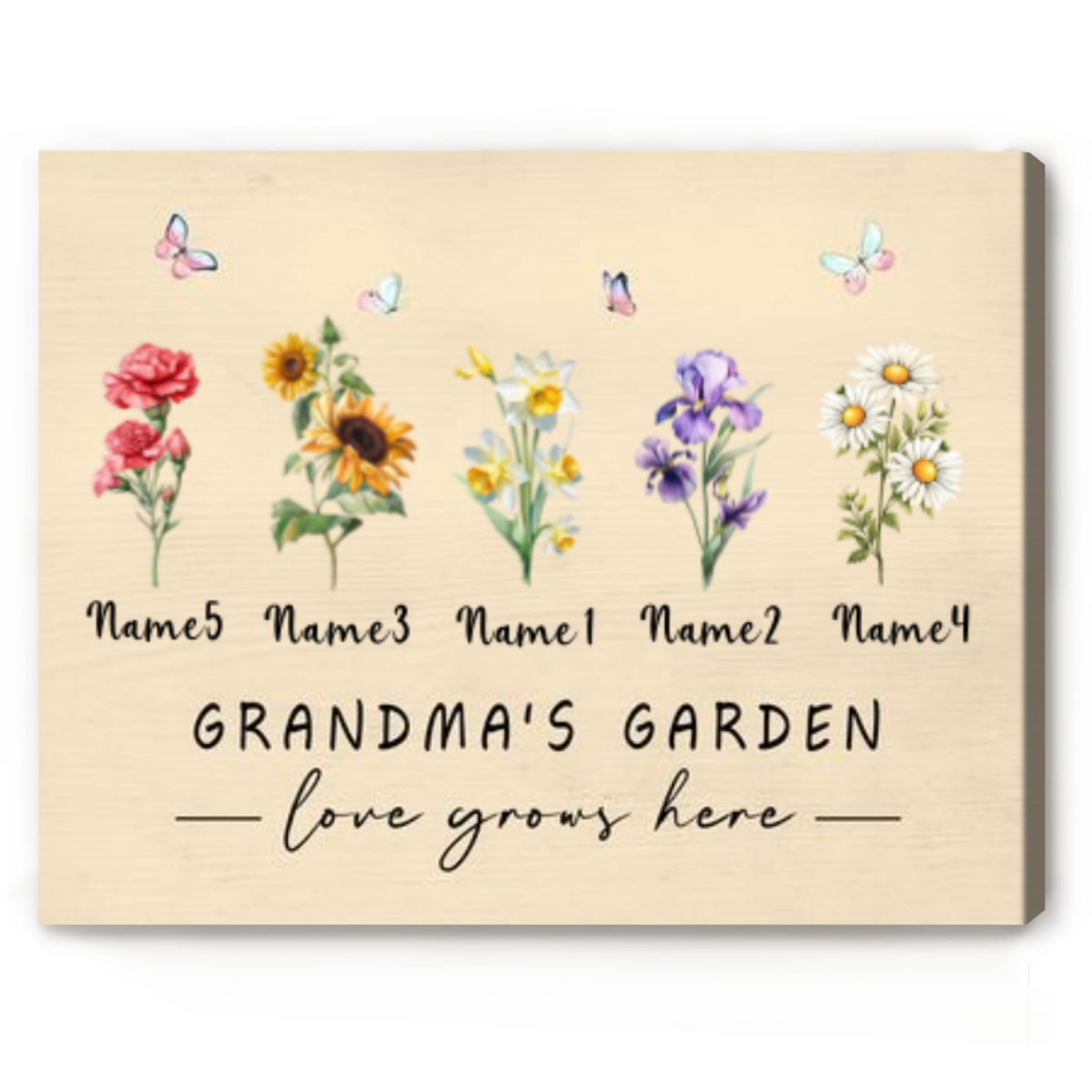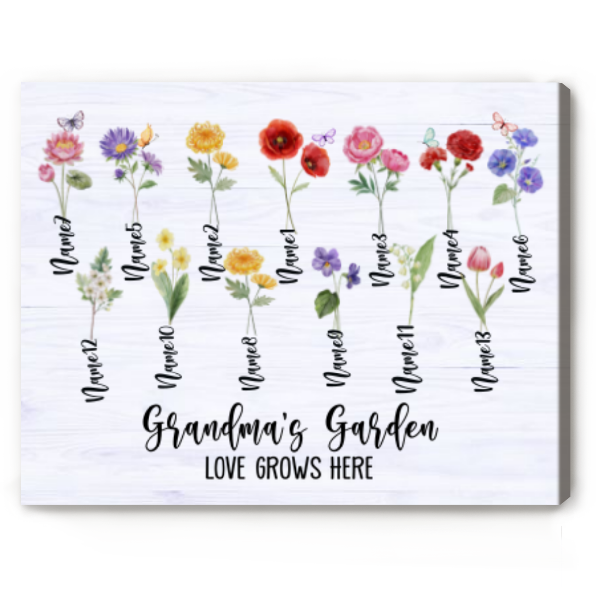 Custom Birth Month Flower Grandma’s Garden Canvas, Personalized Christmas Gifts For Grandma, Grandma Gift With Grandkids Names, Unique Birthday Gift for Grandma