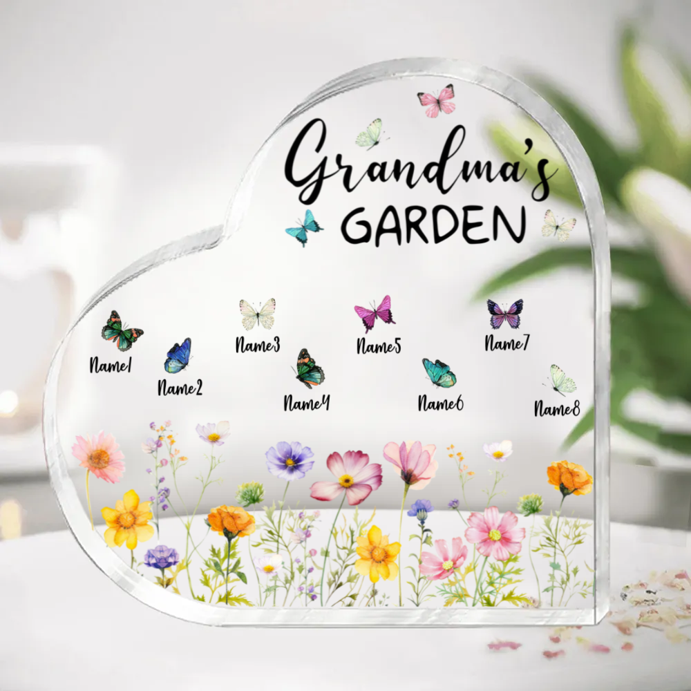 Custom Grandma’s Garden Heart Acrylic Plaque – Mother’s Day Garden Gifts For Grandma – Grandma Gift Personalized – Butterflies With Kids Name Block