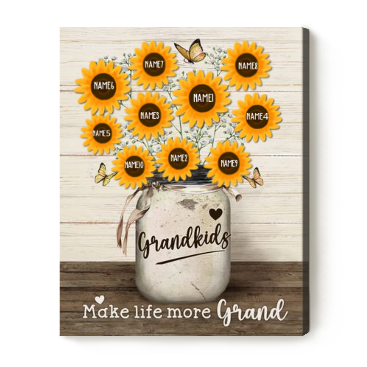 Grandkids Make Life More Grand – Custom Grandkids Name Sunflower Canvas Print – Gardening Gifts For Mothers Day – Grandmother Personalized Gifts