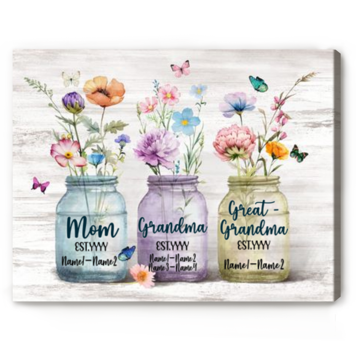 Mom Grandma Great Grandma – WildFlower Custom Grandma Canvas – Mother’s Day Grandma Gifts – Great Grandma Gifts with Custom Kids Names