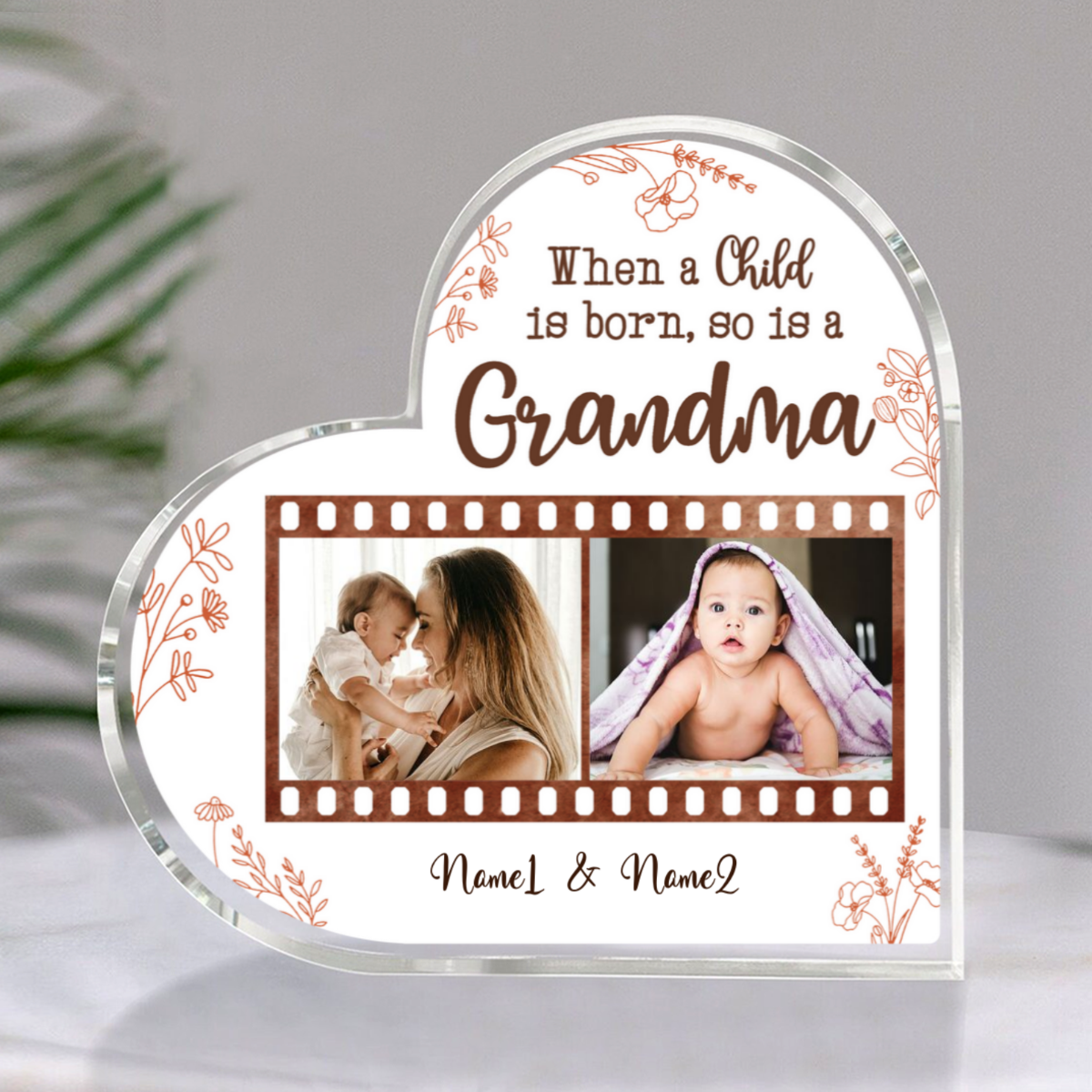 When A Child Is Born So Is A Grandma Custom Photo Acrylic Plaque – Mothers Day Gift For New Grandma – Gift For New Grandmother