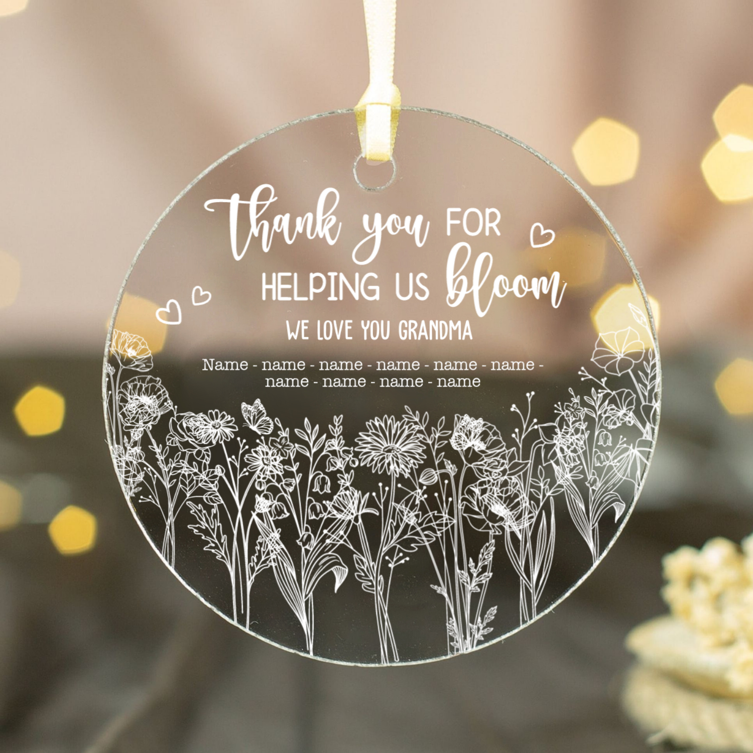 Thank You Grandma for Helping Us Bloom – Custom Grandma Ornament – Personalized Birth Flower Grandkids Ornament – 2025 Christmas Nana Gifts