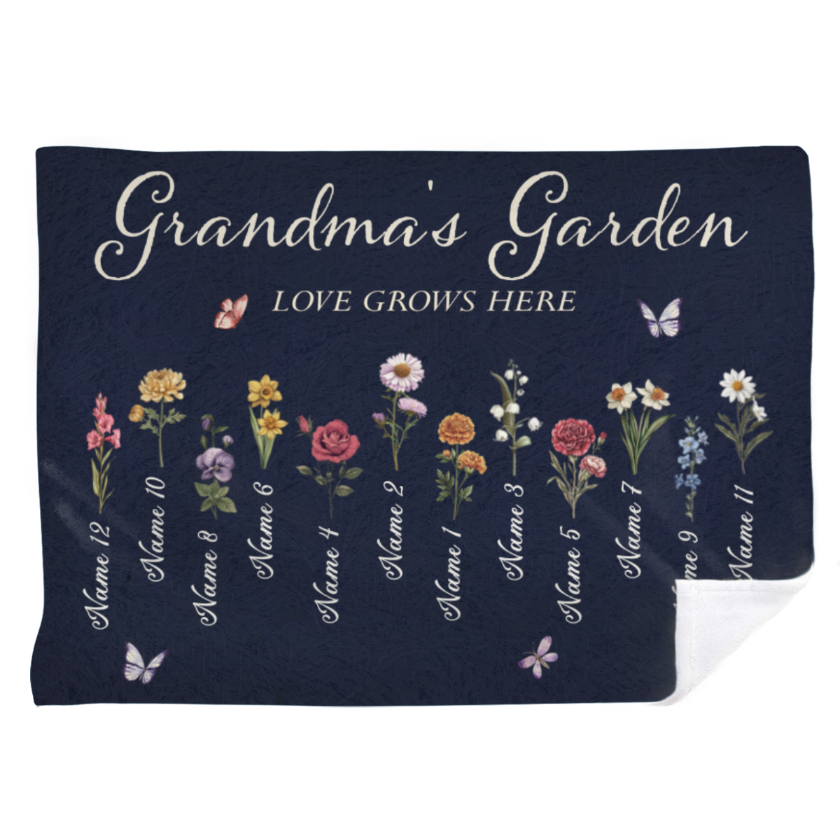 Grandmas Garden Fleece Blanket – Mothers Day Gift For Grandma – Birth Flower Grandma Gift – Grandma Gift With Grandkids Names – Gift For Nana