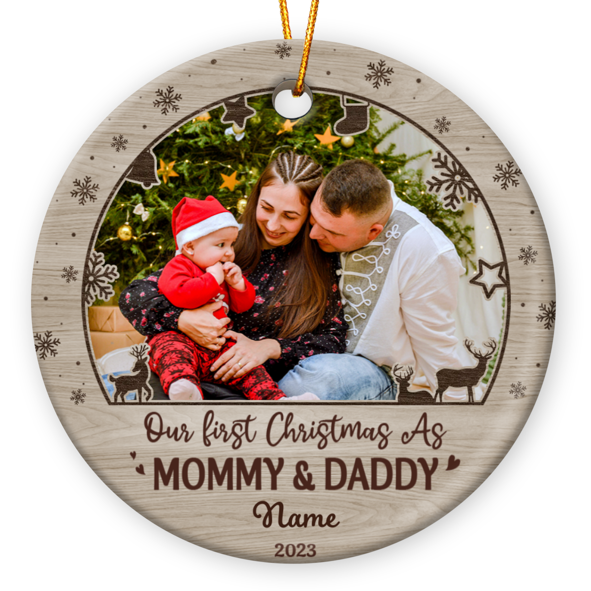 First Christmas As A Mommy and Daddy – Personalized New Parents Photo Ceramic Ornament – Newborn Baby Family First Christmas Tree Decoration