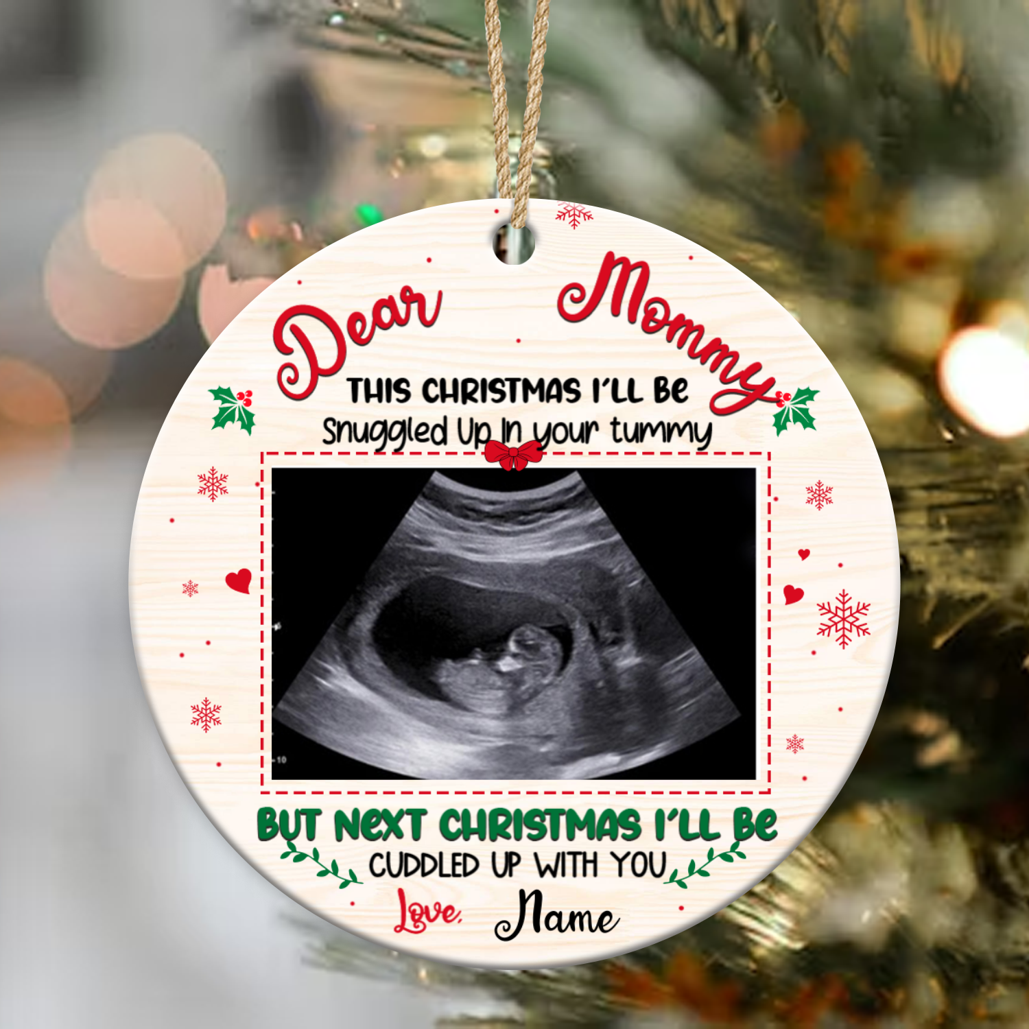 Mommy To Be Ornament, Baby Ultrasound Christmas Ornament, Expecting Mom Gift, New Mom Gift First Xmas, I’ll Be Snuggled Up In Mommy’s Tummy Ornament