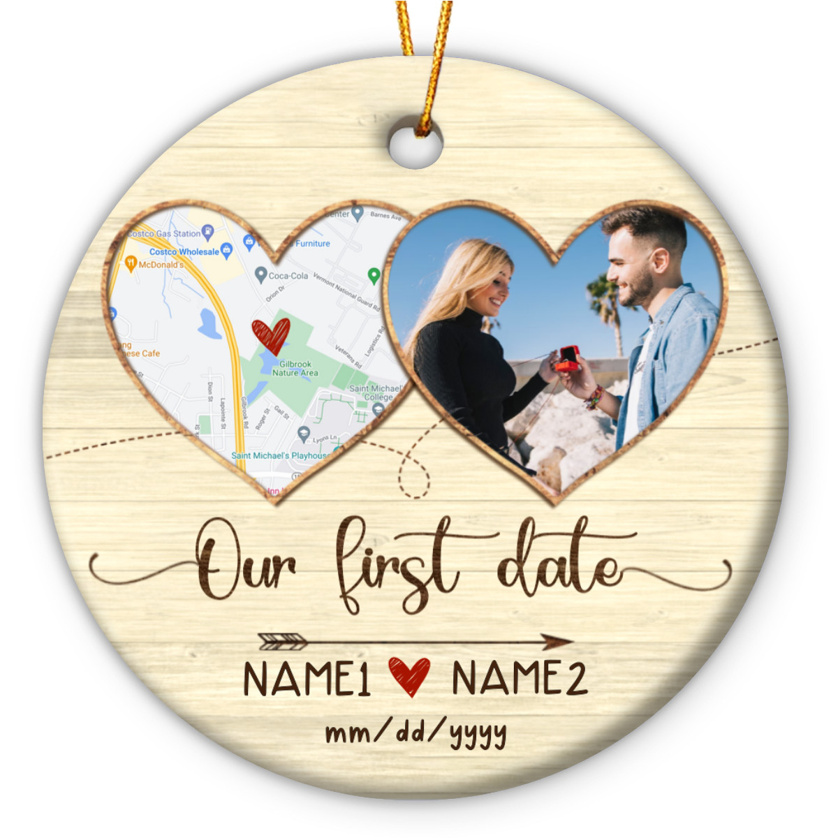 Our First Date Personalized Map Ceramic Ornament, Couples First Christmas Ornament, Christmas Decorations For Couples