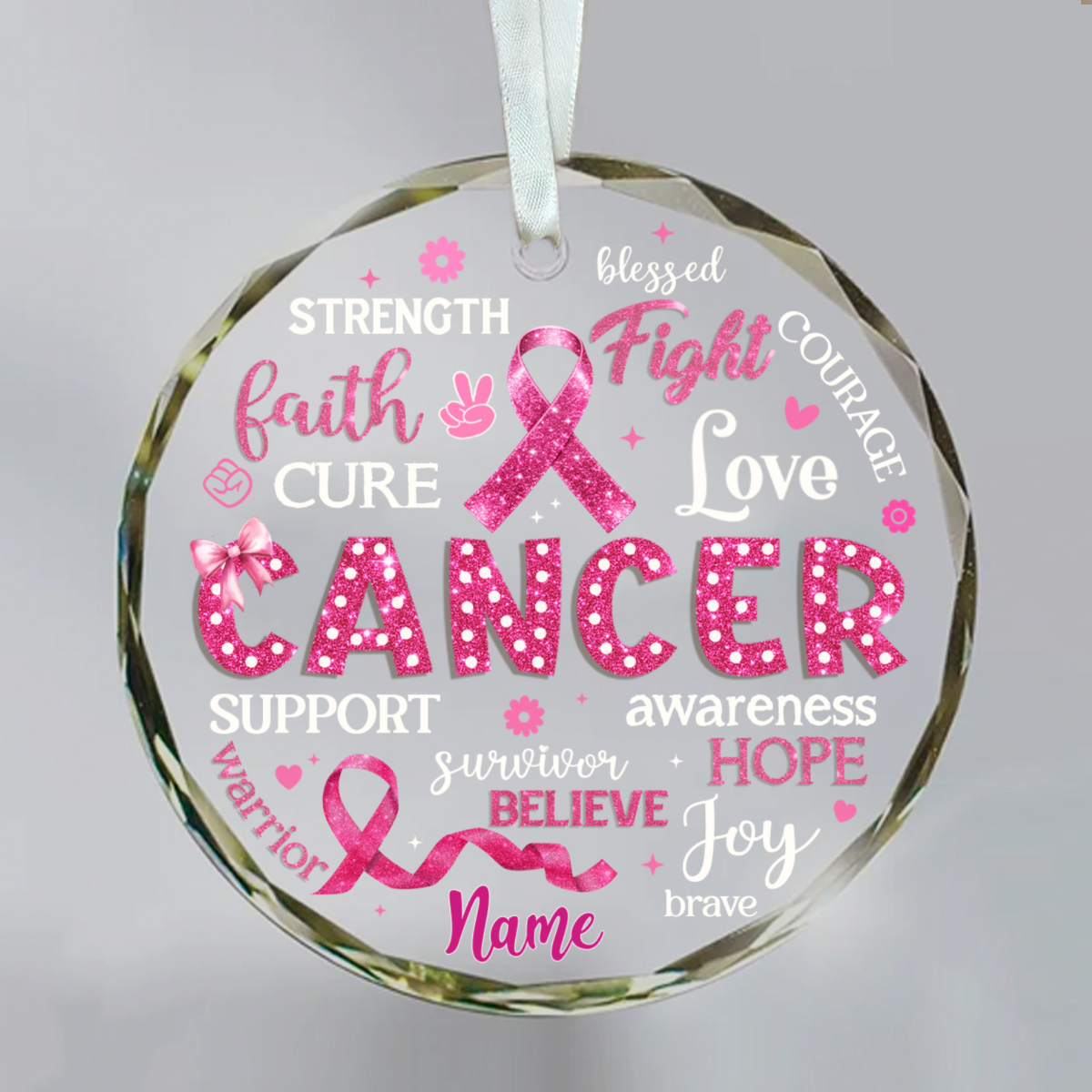 Breast Cancer Awareness Personalized Ornament, Pink Ribbon Ornament, Breast Cancer Awareness Gift, Breast Cancer Ornament