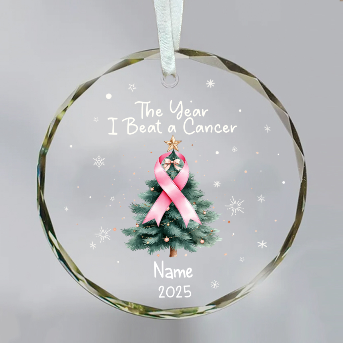Personalized Ornament With Name – The Year I Beat a Cancer, Beating Breast Cancer Christmas Gifts, Milestone Keepsake