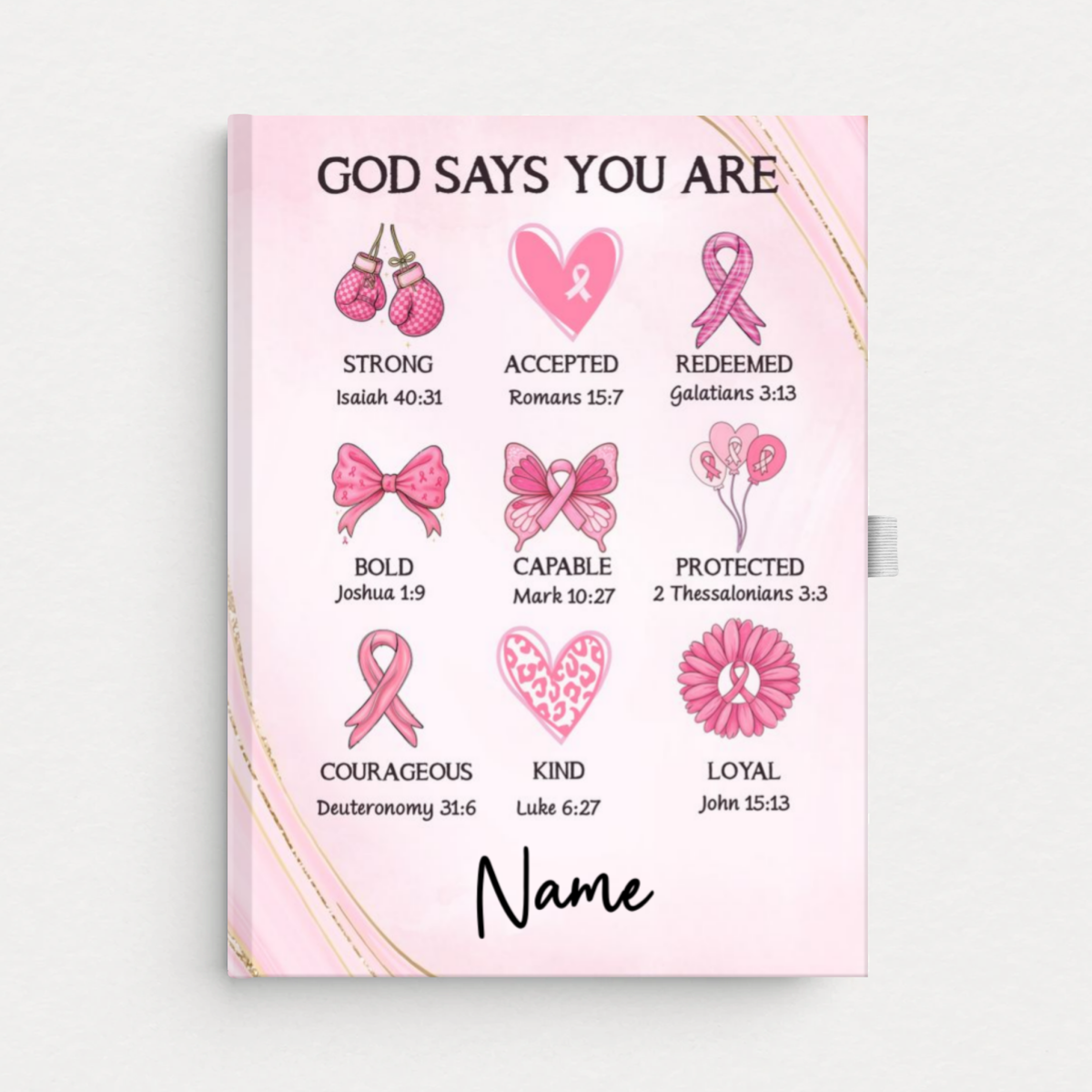 Personalized Breast Cancer Journal – God Says You Are, Positive Prayer Affirmations Notebook, Cancer Recovery Gift