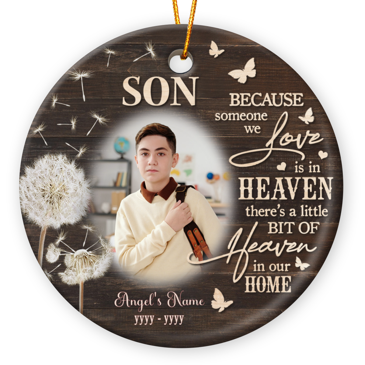 Heaven Is A Beautiful Place Personalized Son Memorial Photo Ornament – Remembrance Gifts For Loss Of Son