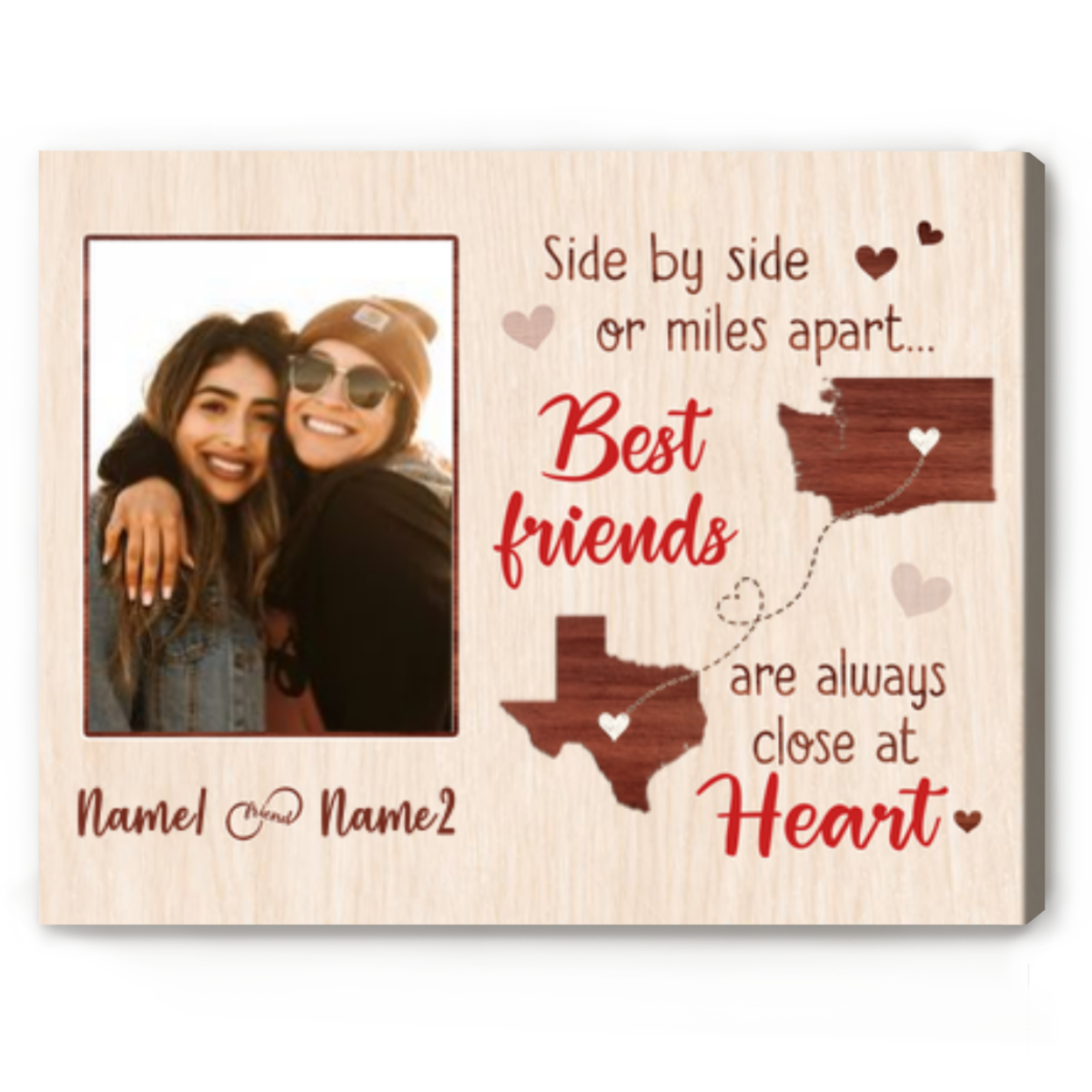 Personalized Distance Friendship Gifts, Side By Side Or Miles Apart Custom Photo Canvas Print, Long Distance Christmas Gifts For Friends