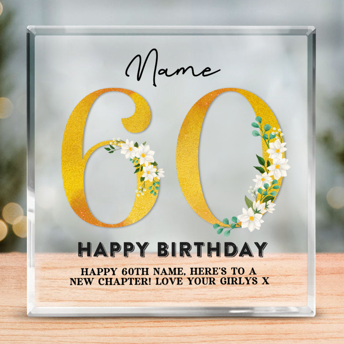 Happy 60th Birthday Personalized Acrylic Block With Names – 60 Years Old Birthday Keepsake Gift – Unique 60th Birthday Gifts For Women Men
