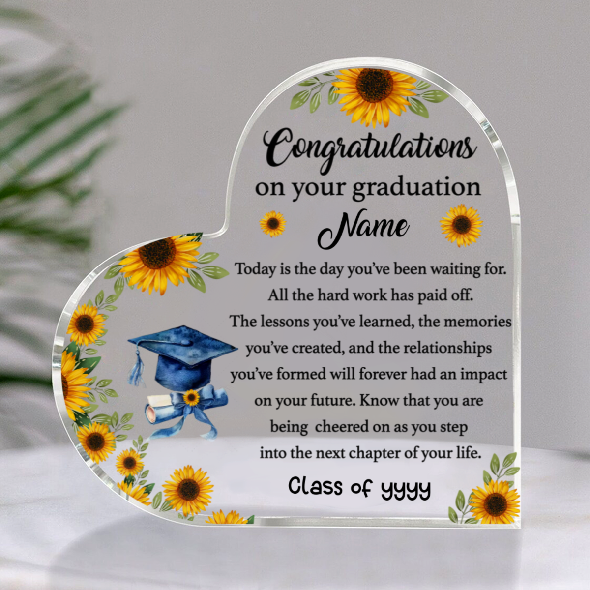 Congratulations On Your Graduation – Custom Graduation Heart Acrylic Plaque – 2025 Graduation Gift For Her Him – College Graduation Gift