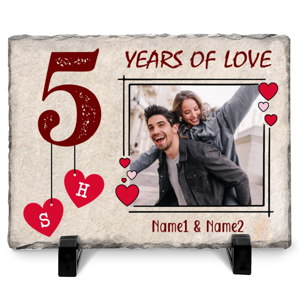 5 Years Of Love – Personalized 5th Anniversary Photo Slate Stone – 5 Year Anniversary Gifts for Him