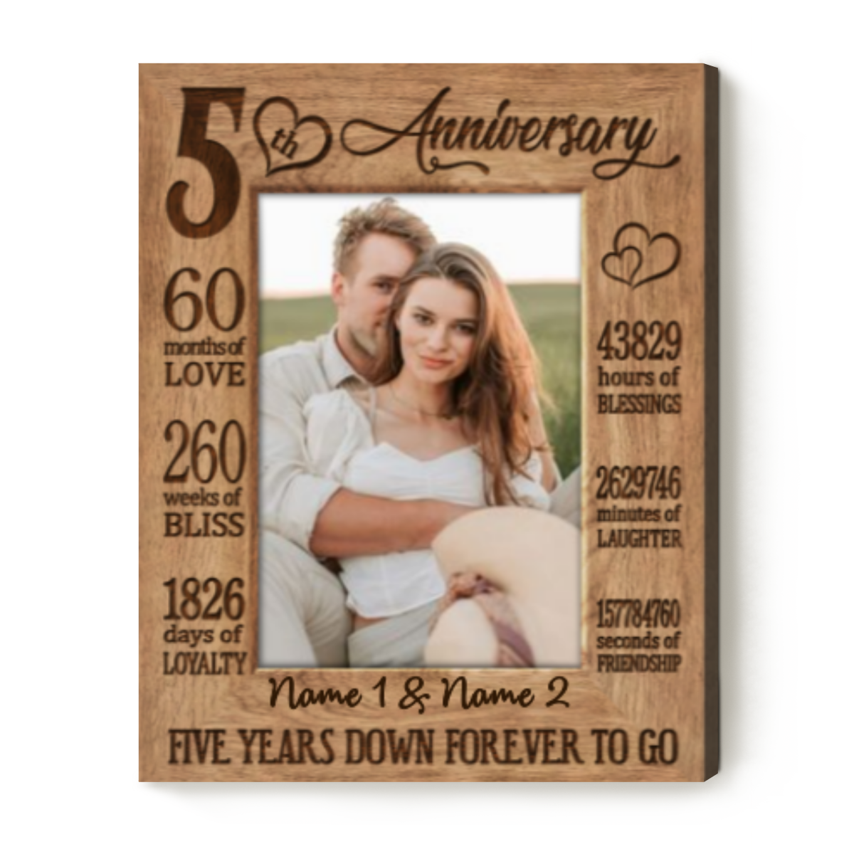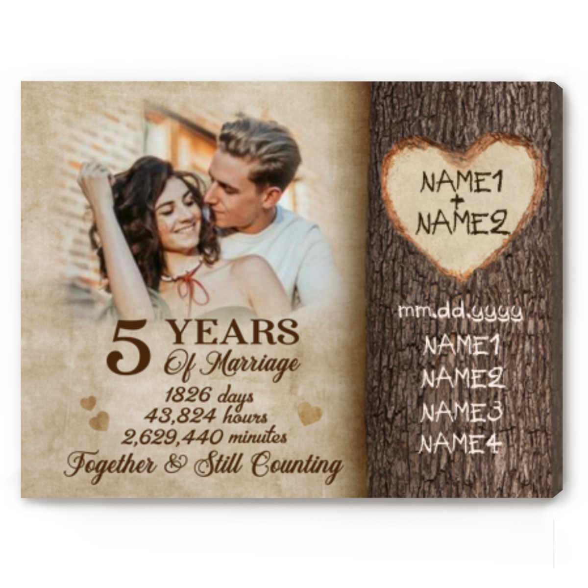 5 Years Of Marriage Custom Photo Canvas, Carve On Tree Personalized 5th Wedding Anniversary Gift, Wood Anniversary Gifts