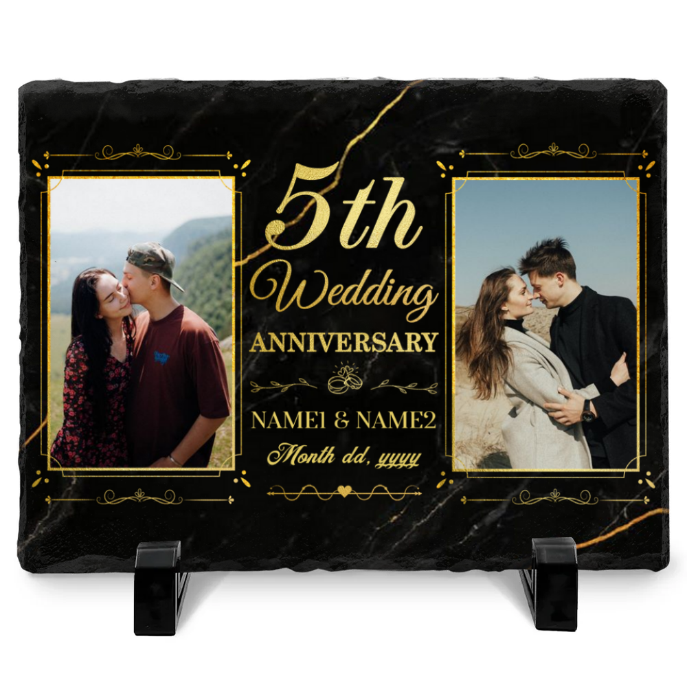 5th Wedding Anniversary Personalized Couple Photo Slate – Custom 5 Year Anniversary Stone – 5th Anniversary Gift Ideas