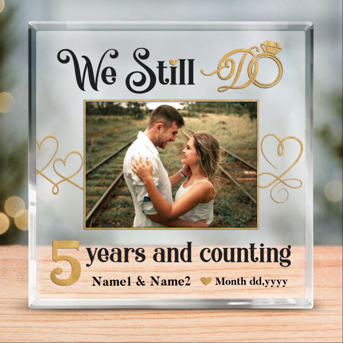 We Still Do 5 Years And Counting Custom Acrylic Block – Personalized 5th, Five Years Anniversary Gift for Wife Husband – Wood Wedding Anniversary Gift