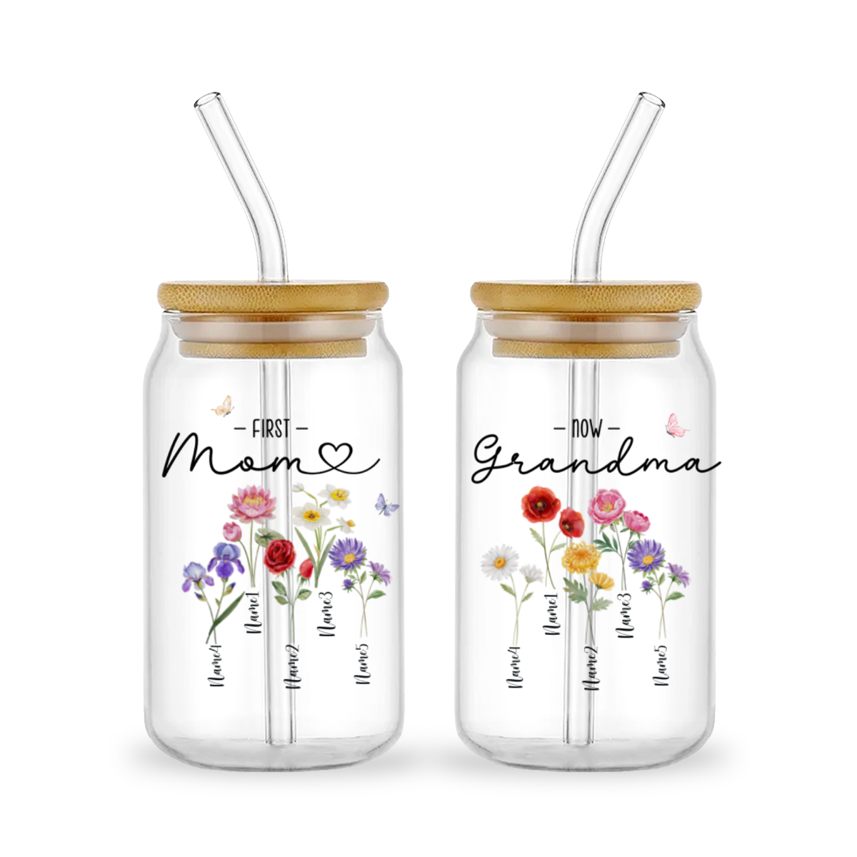 First Mom Now Grandma Garden Gift – Personalized Mom Grandma Glass Tumbler – Custom Birth Flower Gift For Mom Nana – Mother’s Day Gift 2025