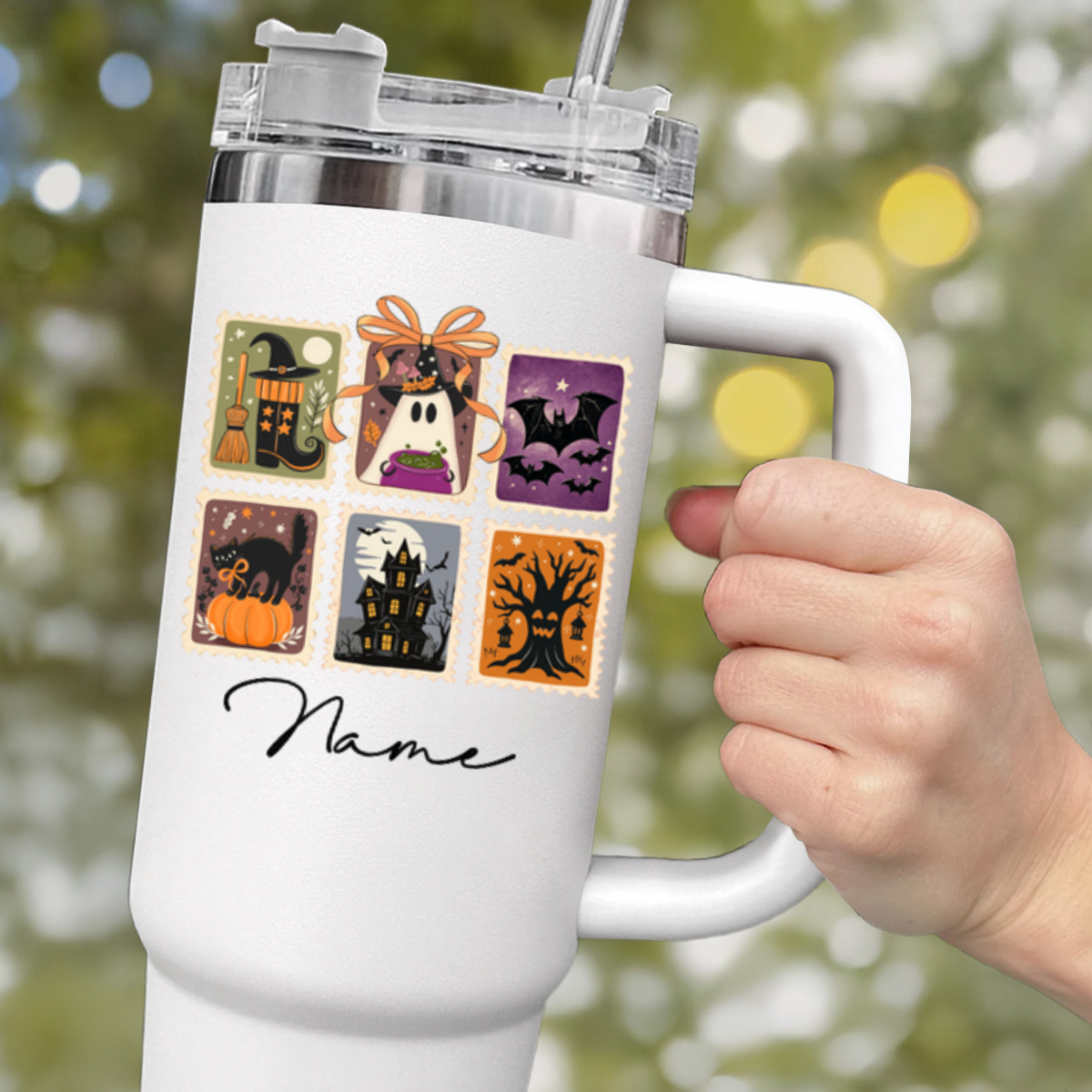 Personalized Retro Halloween Stamps Tumbler, Girly Halloween Tumbler, Spooky Season Tumbler, Spooky Mama Tumbler, Spooky Season Gift