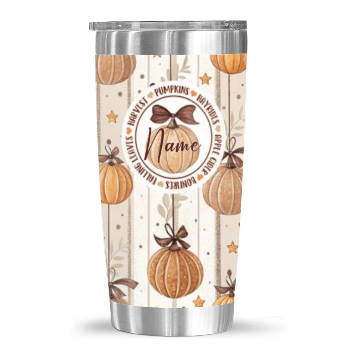 Personalized Fall Pumpkin Tumbler, Custom Floral Pumpkin Tumbler Cup, Pumpkin Travel Mug, Fall Travel Cup, Autumn Thanksgiving Tumbler Gift