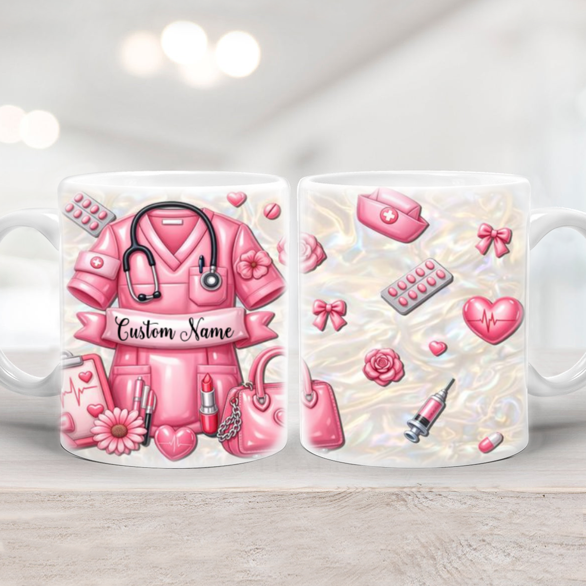 Personalized Nurse Accessories 3D Effect Mug – Nurse Gift for Her, Custom Nurse Name Keepsake, Nurse Graduation Gift, Cute Medical Icons Mug